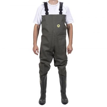 The Tyne Safety Chest Wader is a robust and reliable solution for professionals working in wet and hazardous environments, particularly within the fishery industry. Made from durable PVC and designed for full waterproof protection, this chest wader features a steel toe cap and steel midsole for superior impact and penetration resistance. With reinforced knees, an anti-static sole, and SRA-rated slip resistance, it offers excellent traction and safety on wet, slippery surfaces.