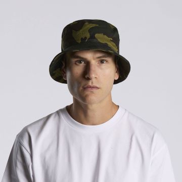 Introducing the AS Colour Camo Bucket Hat, constructed from lightweight 100% cotton with an all-over camo print for a stylish edge. It features a reinforced brim with stitching detail, side eyelets for ventilation, and a tear-out AS Colour label. One size fits all for effortless wearability.