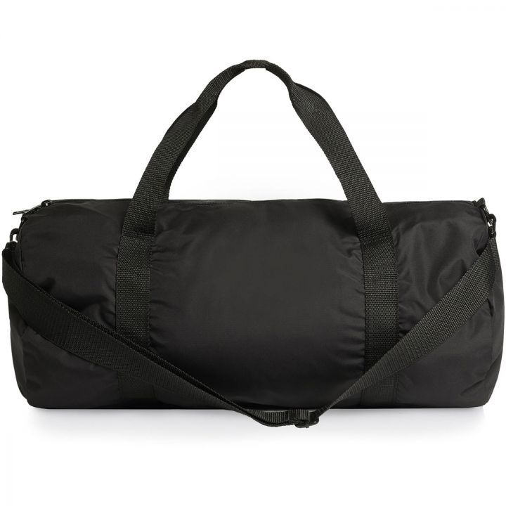 Cylinder duffel, large main compartment, YKK tonal nylon zip, reinforced handles, adjustable shoulder strap, YKK zip