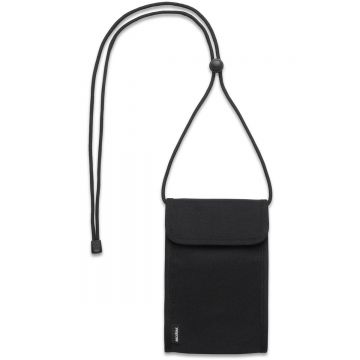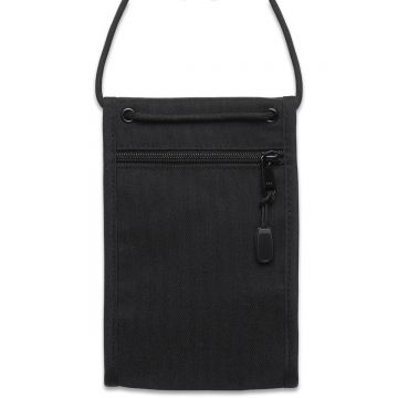 One main flat compartment, velcro to close, one external zipped pocket, YKK zip, single plastic adjuster on shoulder strap