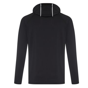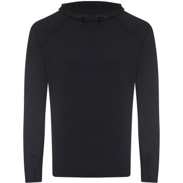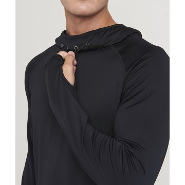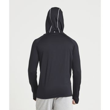 Fit blended fabric with elastane, it offers stretch, a sporty fit, and an adjustable cowl-style hood. Ideal for layering before, during, or after workouts, it also features thoughtful design elements for mobility and convenience.