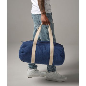 Carried by hand or over the shoulder, the denim barrel bag is a popular style contender.