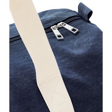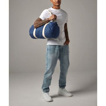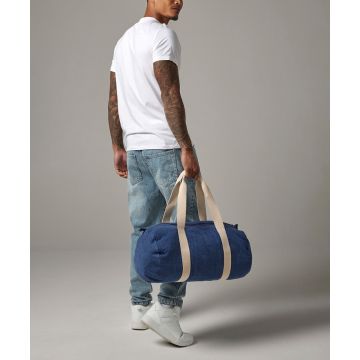 Available in a soft-touch denim blend, this relaxed barrel-shape bag makes the perfect gym kit holdall or weekend bag.