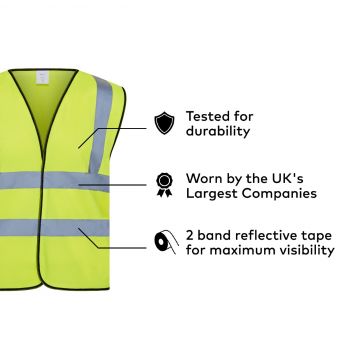 Our simple 2 band & brace Hi Vis Vest, prioritising safety, ranks as one of our top-selling items.