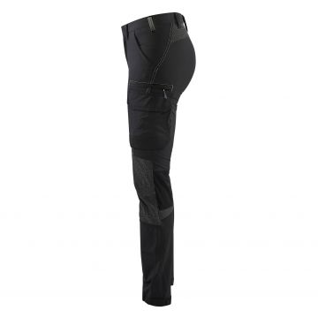 Ripstop service trousers designed for women, made from lightweight and durable 4-way stretch fabric. With a slim, body-hugging fit, ventilating mesh at the back of the knees, and an elasticated waistband, they combine comfort, freedom of movement, and modern style. Adjustable hems and black reflective details add both functionality and safety.