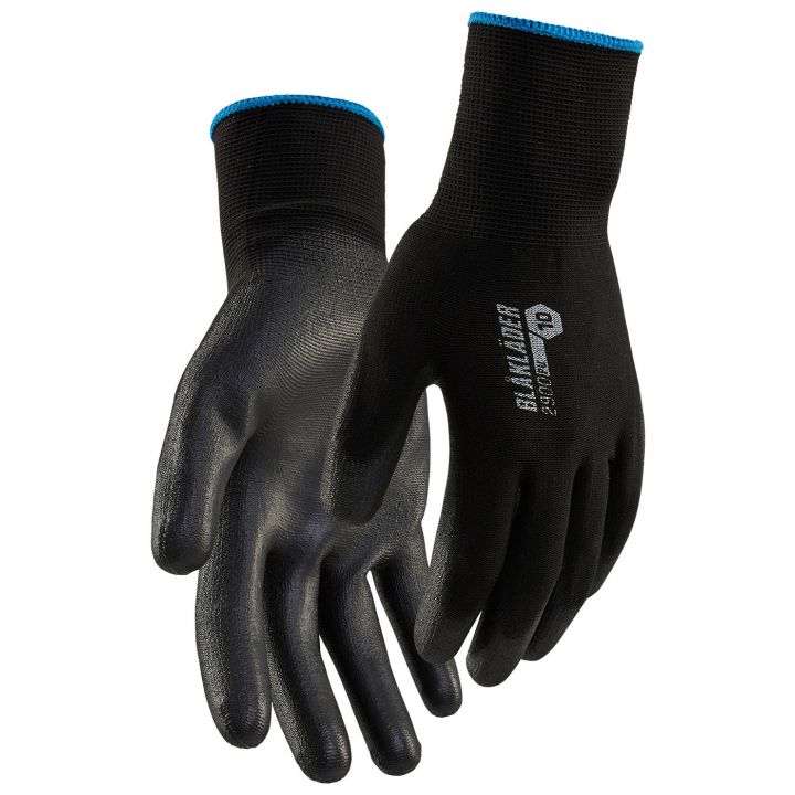 Thin work gloves ideal for precise handling and light assembly work. Synthetic glove, palm dipped in polyurethane. The material on the palm also provides certain resistance to oil and grease and the back of the glove is ventilated.