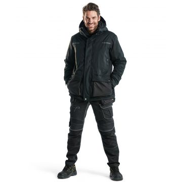 100% polyester, twill, mechanical stretch, laminated, waterproof 11 000 mm, windproof, breathable 4000g/m2/24H, Ret 6,3, 150 g/m2Lining: Quilt lining with fleece at bottom