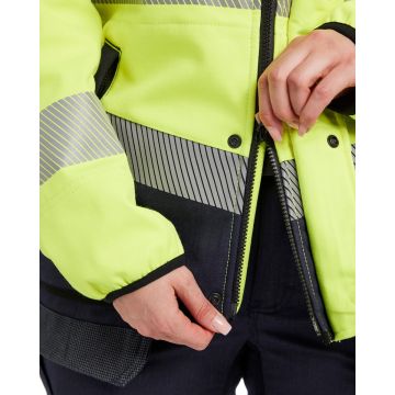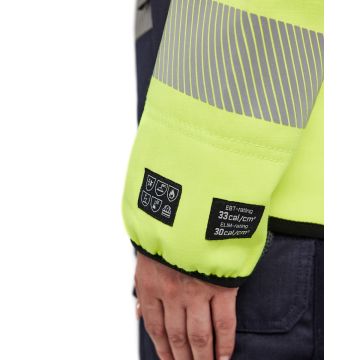 Metal- and polyester-free softshell jacket with women’s fit in hi-vis that is inherently flame-resistant.