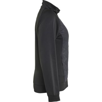 - This jacket-sweatshirt has a quilted front and is unlined