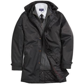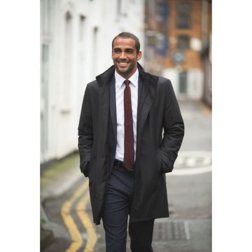 The Chicago Raincoat offers superior waterproof protection with a modern tailored design. Featuring a 5-button fly front with zip, centre vent, outer welt pockets, quilted lining with internal pockets, and a collar with concealed hood, this raincoat combines functionality and style for all-weather wear.