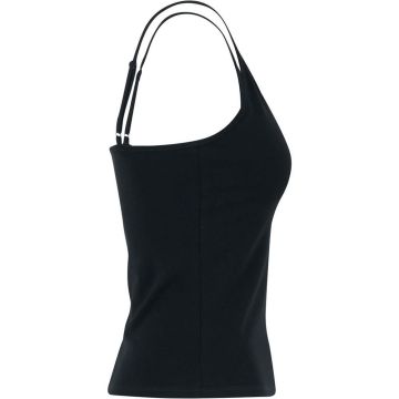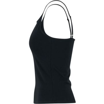 The regular fit ensures a flattering silhouette, while the sleeveless cut and strap neckline offer a chic and contemporary look