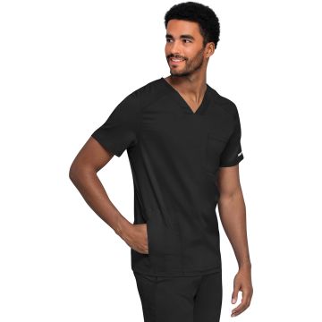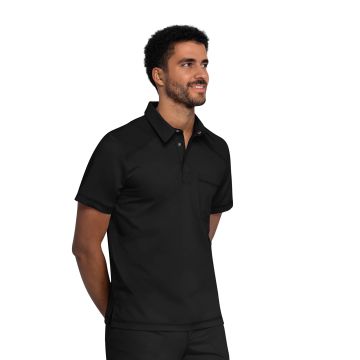 The Cherokee Revolution Men's Polo Shirt offers a Modern fit with sporty styling and practical functionality. Designed with breathable mesh shoulder panels and a chest pocket, this polo ensures comfort, mobility, and convenient storage throughout the workday. Its sleek design works well tucked in or worn untucked.