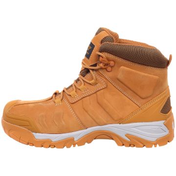 Featuring full-grain cow leather in honey, this waterproof safety boot combines style with resilience. It's fortified with a steel toe cap, anti-penetration midsole, and TPU toe guard for reliable performance. Comfort insoles and a padded collar ensure all-day freshness and comfort in challenging conditions.