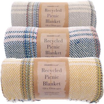 This recycled cotton picnic blanket is perfect for enjoying a day out at the beach or a relaxing picnic in the park. Each blanket is made from recycled materials, so colour and design may vary.120 x 150cm picnic blanket. Made from recycled materials, therefore creating natural variation in colour and design.