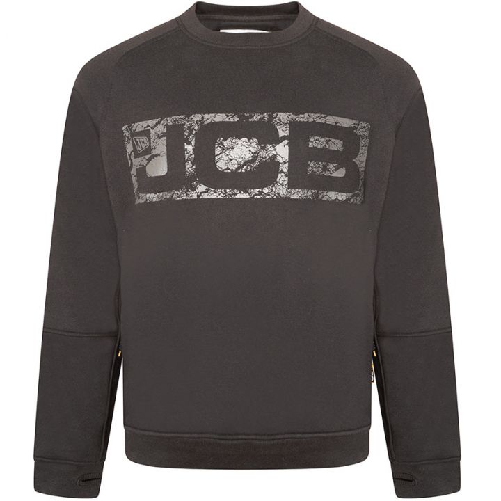 The Black Crew Sweatshirt is a durable, cotton-rich essential designed for comfort on and off the job. With reinforced elbow panels and secure zipped pockets, it combines everyday wearability with practical workwear performance, finished with iconic JCB branding.