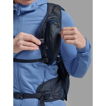 Two off-centre Montane Click and Go chest harness straps for security whilst moving at fast pace