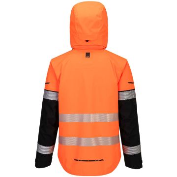 The EV4 Hi-Vis Shell Jacket uses dynamic stretch fabric that offers maximum waterproof, windproof and breathable protection at a EN343 4.4 level, for year round wear. The ergonomic profile and raglan sleeves allow for an unrestricted range of motion with greater freedom of movement. Its longer back length, wind cuffs, removable helmet compatible hood with 3 point adjustment system and toggle adjustable hem provide extra protection against the elements.