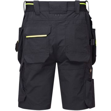 EV4 Lightweight Shorts with detachable holster pockets is cleverly designed and uses the targeted placement of laser holes and stretch fabric to give maximum range of movement when working. These shorts feature a high-rise back waistband and side elastication, ensuring protection in all working positions. Triple stitching throughout for maximum durability.4-Way stretch nylon fabric for added durability and ease of movement
