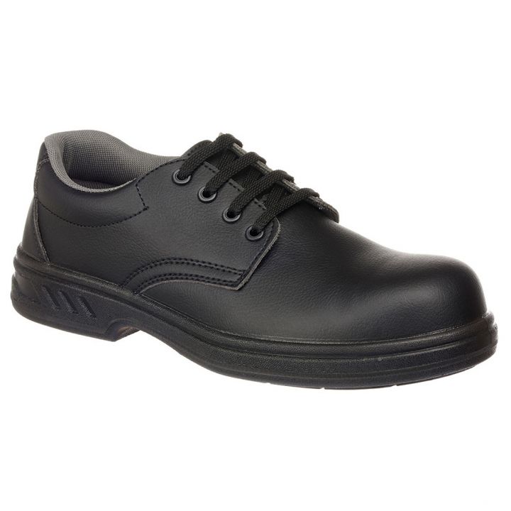 Classic laced safety shoe with padded collar for all day comfort. Minimal design makes this shoe practical, safe and durable.