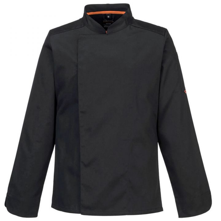 Air Pro Long Sleeve Jacket is a modern chef jacket designed for comfort, breathability, and professional style. Made from a durable Kingsmill twill with Texpel™ Splash Eco finish, it features large Mesh