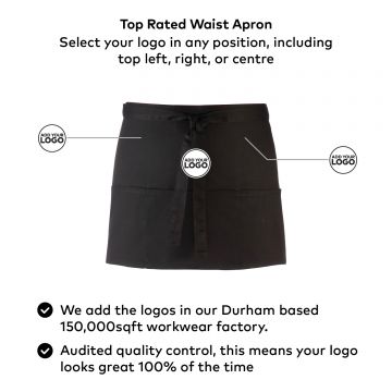 A popular style of apron seen in many bars and restaurants, this short waist apron has three open pockets and comes in 24 colours from the Premier '