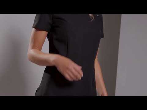 Side yoke detail with four feature buttons and satin trim add elegance and the princess seams and bust darts provide a flattering fit for those working is salons and spas.