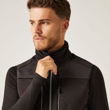 Stretch binding to armholes, hem and collar2 zipped lower & 2 zipped chest pockets, with inner zip guard
