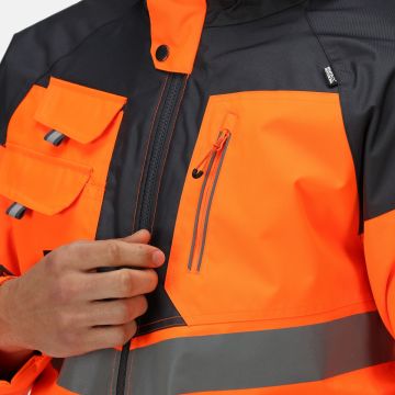 Waterproof, protective and stylish, our Hi-Vis Parka jacket is made for outdoor work in adverse weather. With wind and waterproof Isotex 10000 fabric, taped seams and fleece lining, this hi-vis jacket stands up to all weather.