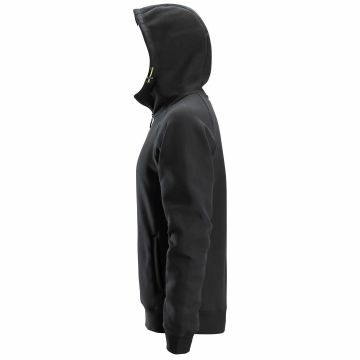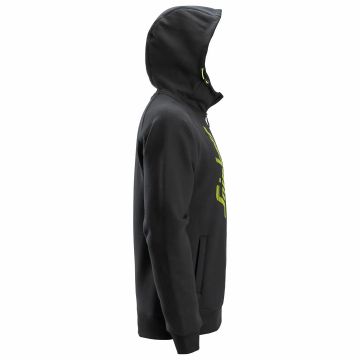 The full-zip hoodie also features two hand pockets with mesh lining, front zipper with rubber puller, and a segmented Snickers Workwear logo made of high-build foam print in neon yellow.
