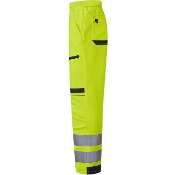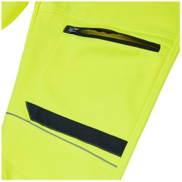 The System Hi-Vis ECO Stretch Softshell Trouser – Yellow offers cold-weather protection with built-in flexibility, durability, and sustainable innovation. Crafted from GRS-certified recycled bonded fleece with reinforced Oxford panels, these trousers are designed to perform in tough outdoor conditions. Part of our Blue Sphere range, they combine ethical manufacturing with practical features and modern styling for today’s professionals.