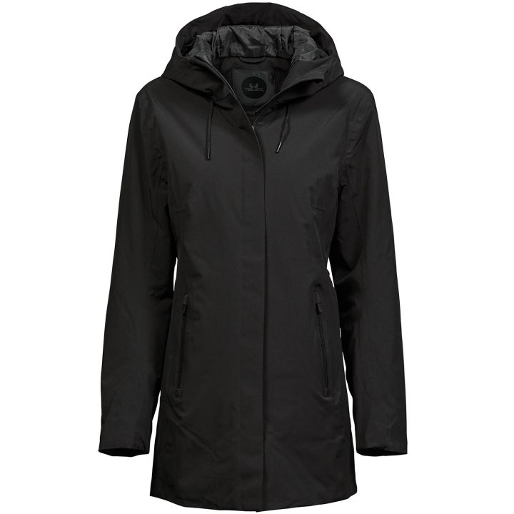 The All-weather parka has a smooth, flawless surface for the modern businesswoman, crafted in a waterproof, stretch material insulated with premium Du