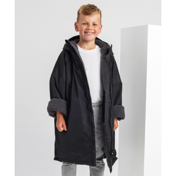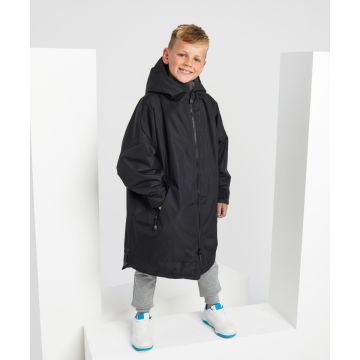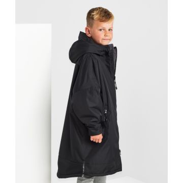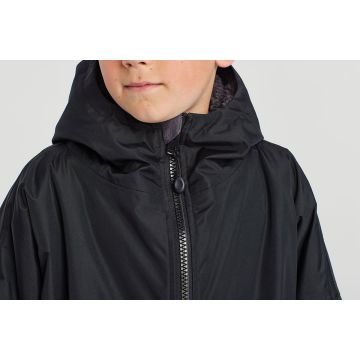 Dri® All-seasons waterproof changing robe boasts a waterproof exterior with hood to keep kids dry, as well as adjustable straps to the wrists and chin guard to help lock in heat on windy days.