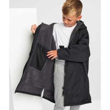 Designed to be oversized, the jacket is ideal for changing into warm, dry clothes, offering a double zip – so more room to move! Featuring multiple deep pockets, inside and out, it’s perfect for rainy school days.