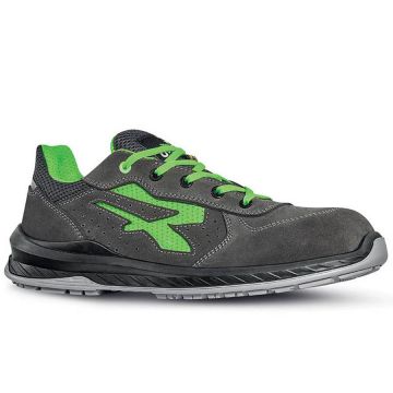 - Comfortable safety footwear with upper in soft perforated suede and mesh inserts and Wing