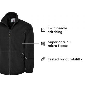 A premium quality micro fleece jacket made from 100% polyester super anti pill micro fleece; this makes a fine addition to the wardrobe.