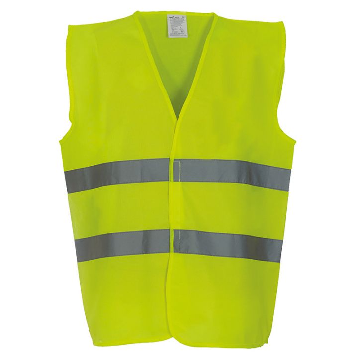 A simple 2 Bands waistcoat perfect for decoration and branding as there is a large area on the front & rear for all your logo needs.100% Polyester fabric with hook and loop fastening. Two 5cm width reflective tapes around the body. Hi-Vis Yellow & Orange conform to EN ISO20471:2013 Class 2.